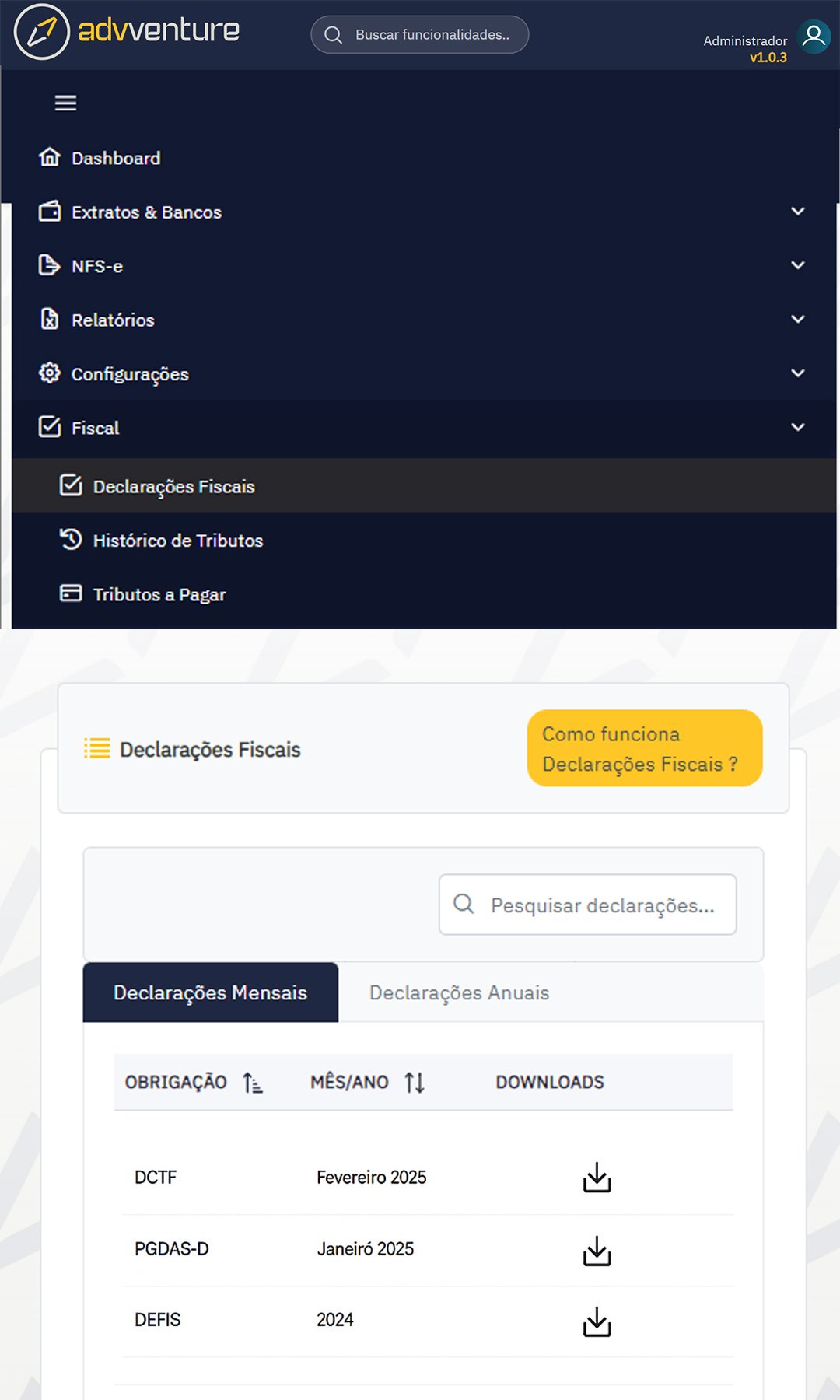 - Envio automático de declarações mensais e anuais (DAS, E-Social, etc.) direto ao Fisco.